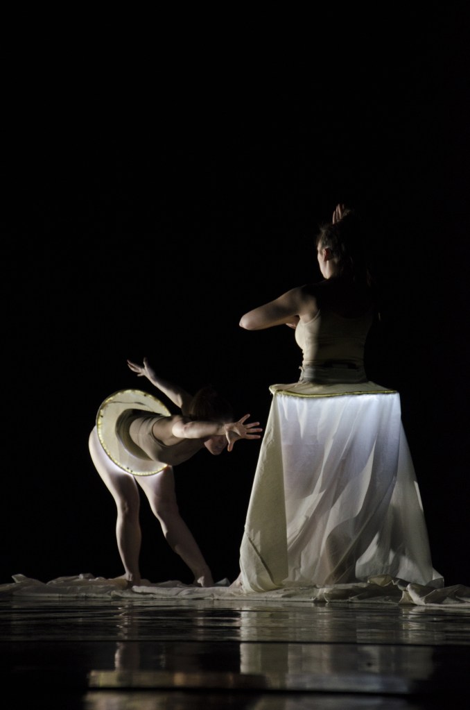 Ailleurs dans la Voie lactée, naît une créature et la lumière. Les deux interprètes et leurs costumes se transforment pour aborder les différentes couches complexes de la relation maternelle. Les costumes lumineux contrôlés à distance découpe le corps des créatures attirant le regard parfois sur le jambes et d’autre sur le haut du corps.
